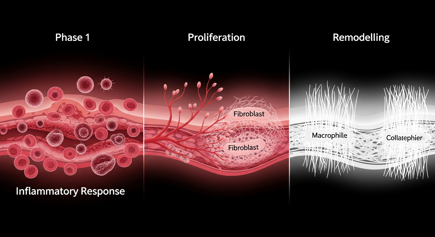 Thymosin Beta-4 is released by platelets and other cells at the site of an injury as an instant response to trauma. It binds to actin (a cell-structural protein) and directs cells to move. In effect, Tβ4 guides cell migration, bringing healing cells like fibroblasts, keratinocytes, and stem/progenitor cells to the injured area. It also markedly promotes angiogenesis, helping form new blood vessels that supply the damaged tissue with nutrients. By reducing cell death and inflammation in the wound environment, TB-500 protects tissues from further damage. The peptide has even been shown to increase collagen deposition and promote faster wound closure in skin injuries.